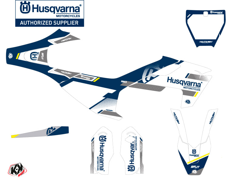 Das Aufkleber-Set für eine HUSQVARNA - TC 85 ist ein Grafik-Kit in den Farben und unter dem Markennamen SPLIT - Weiß/Blau.
